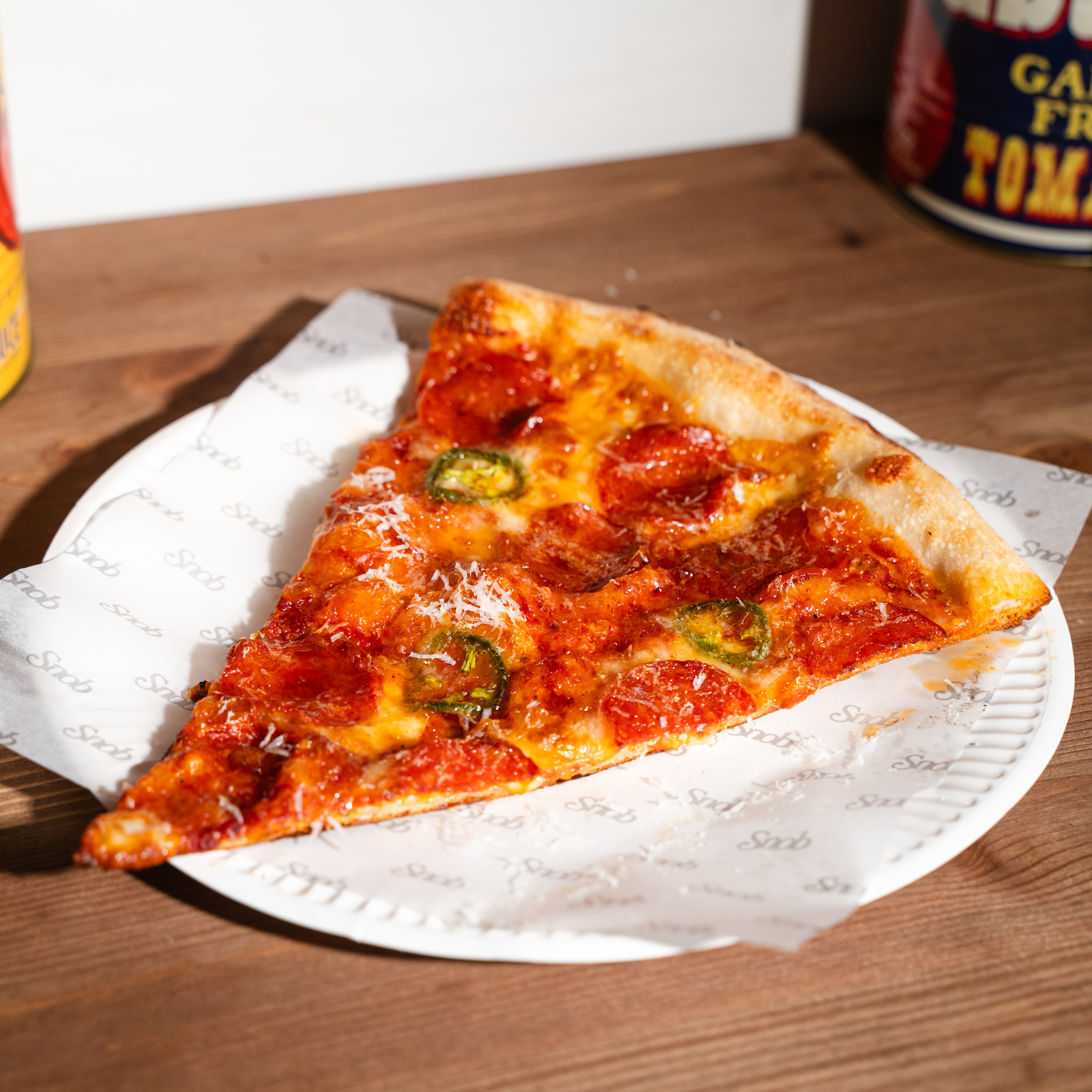 Ingredientes: Tomate · Mozzarela · Pepperoni · Jalapeños · Miel Picante con Chile Ahumado